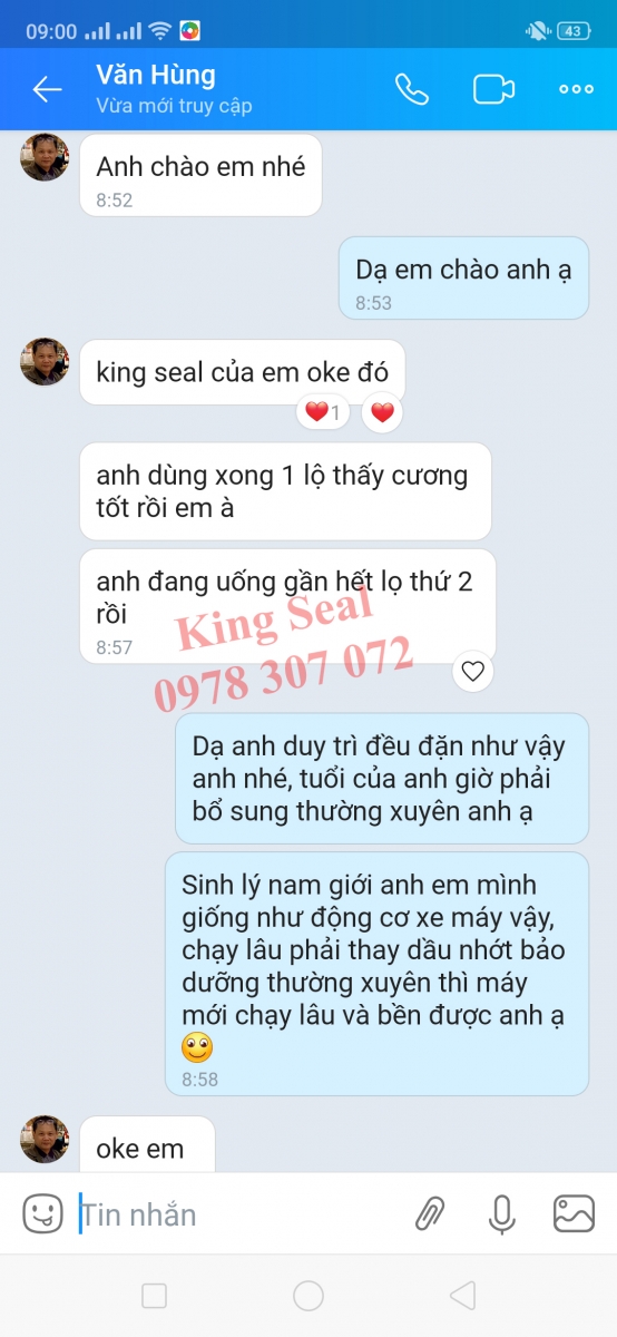 Hiện nay có nhiều thuốc cũng như thực phẩm chức năng giúp nâng cao sức khỏe sinh lí và ham muốn cho nam giới nên cánh mày râu thường phân vân không biết loại nào phù hợp với mình. Tuy nhiên hãy yên tâm vì King Seal đã được mọi người tin dùng phản hồi rất tích cực do hiệu quả của sản phẩm đem lại.